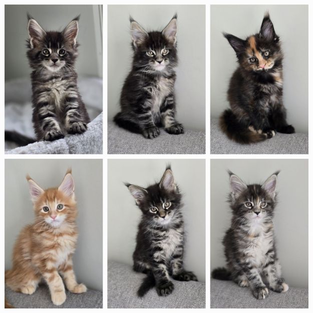 Vinni fikk sitt første kull 17.04.2025 – det kom 6 flotte små, 4 jenter og 2 gutter. Jeg har beholdt ei jente selv, samt at ei jente ble solgt til oppdrett Illyran Lynx. Begge jentene har gjort det svart godt på utstilling. De er også fullt ut helsetestet uten anmerkninger.