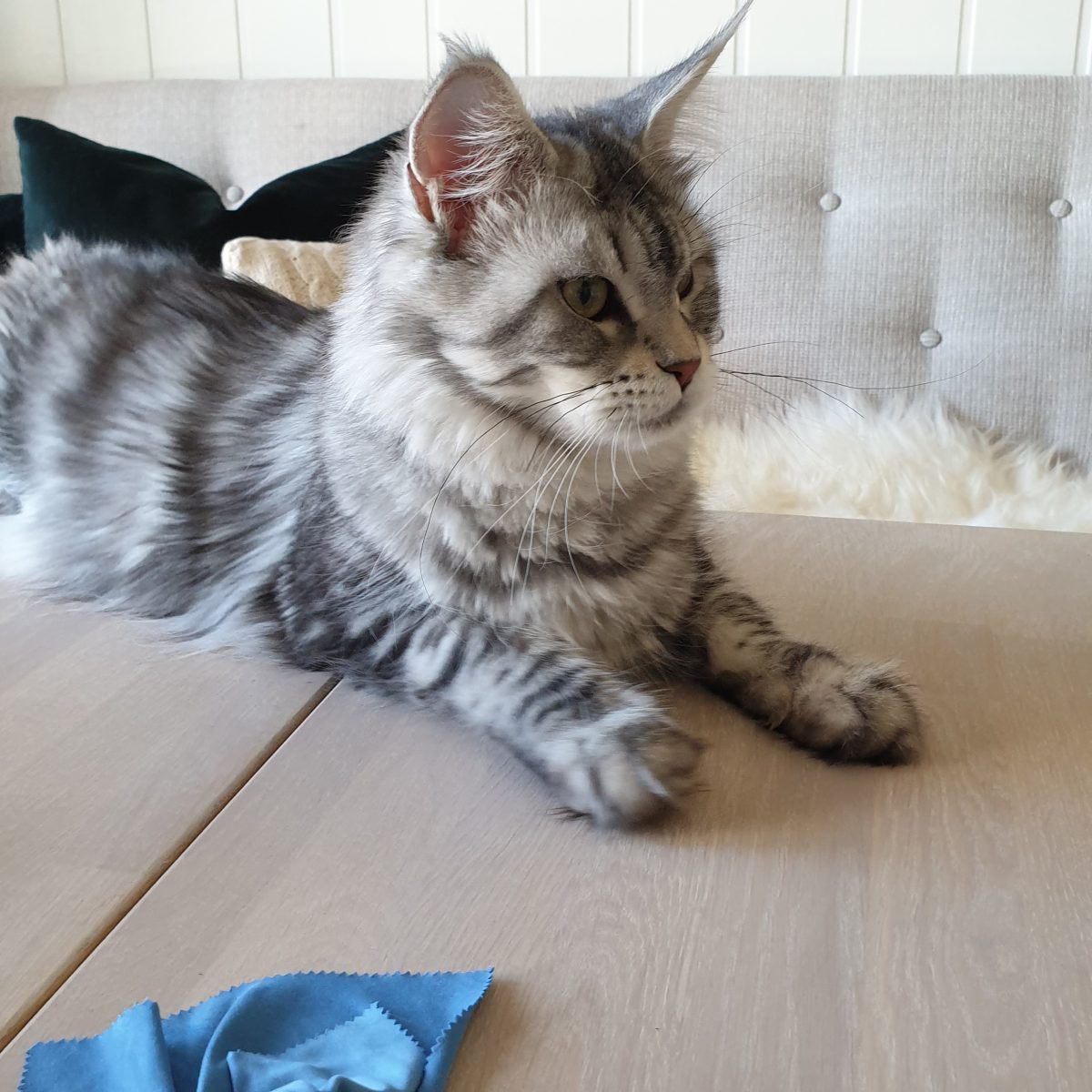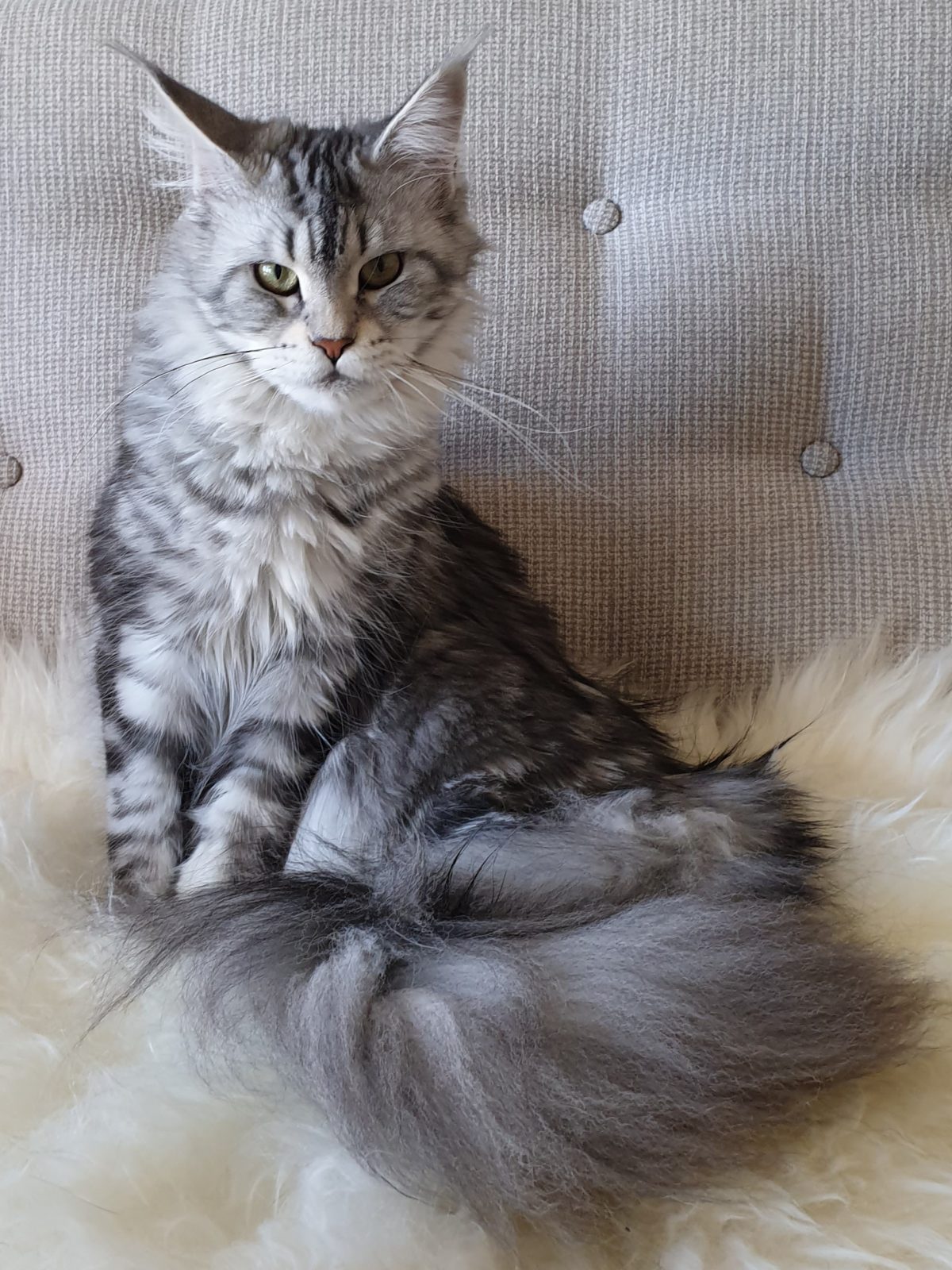 Carmen er ei utrolig herlig frøken, og tvers igjennom snill og god. Hun har et lynne og temperament som går over de fleste. Hun er rasetypisk og har gjort det bra så langt på utstilling. Hun har en svært god benstamme og nydelig sølv. Hun veier ca. 5.1 kg. Alle Carmens helsetester er uten anmerkninger, og jeg håper hun kan tilføre rasen noen flotte kattunger.